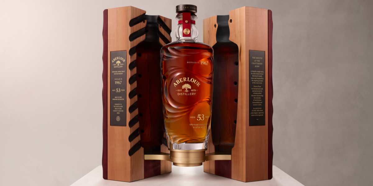 Also up for auction is The Glenlivet SPIRA, a 60-year-old single malt distilled in 1965 and matured for six decades in a single hogshead cask. The timings for the auction couldn’t be tighter for this bottling, which turns 60 on October 1; it will be sampled, filtered and bottled into the SPIRA decanter, intended to evoke the dance of the vapours within The Glenlivet’s stills, just in time for the auction.